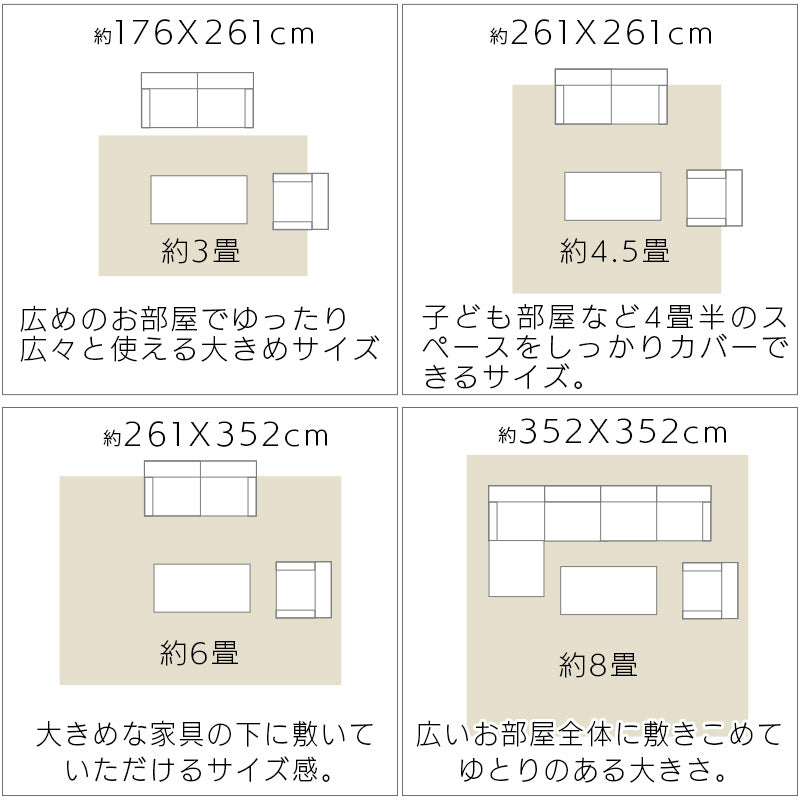 | サイズ | 約176×261cm / 約261×261cm / 約261×352cm / 約352×352cm / 約352×440cm |
