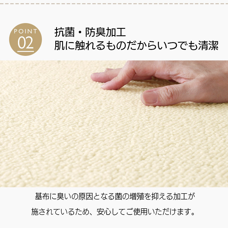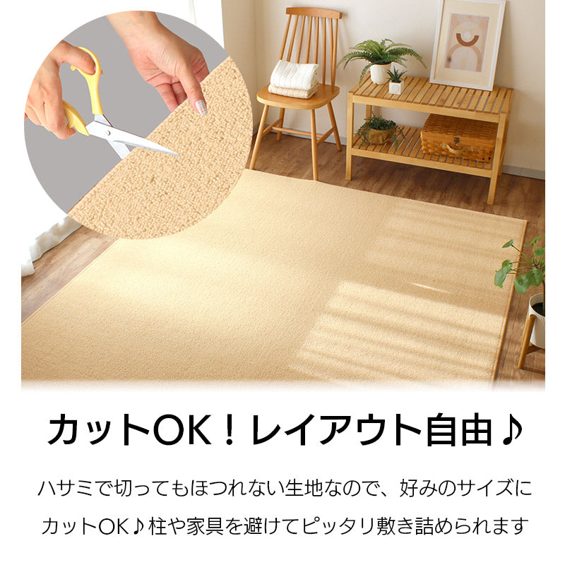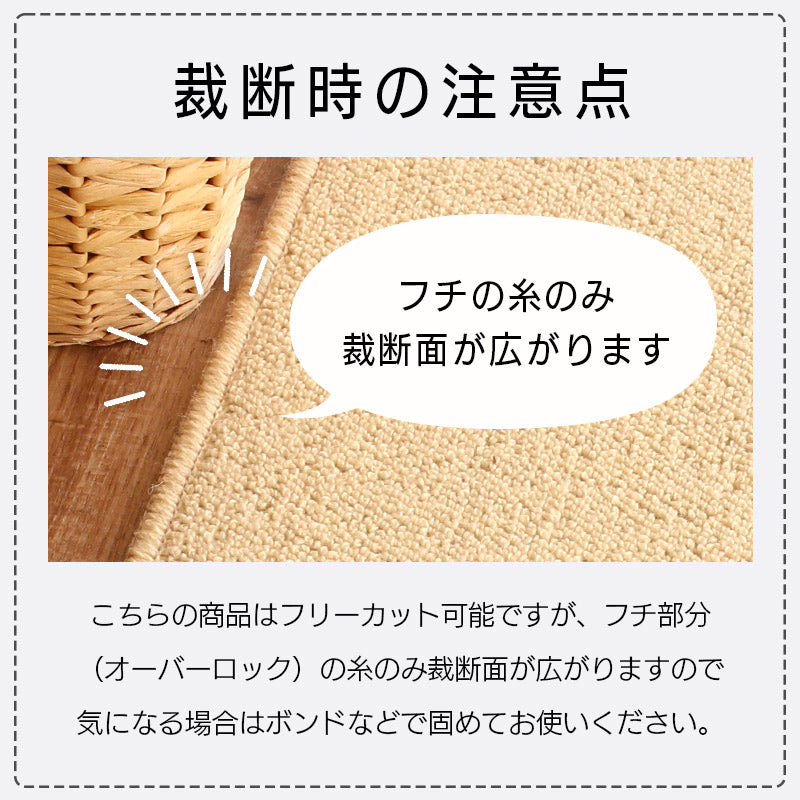 | 備考 | ●フリーカット ※裁断面付近の糸はポロポロと取れますが、そこからほつれていかない仕様になっています。 ●防汚・撥水加工 ●抗菌・防臭・防ダニ加工 ●防炎加工 ●床暖・ホットカーペットOK ●表面を強く擦ると色移りする場合がございます。 |