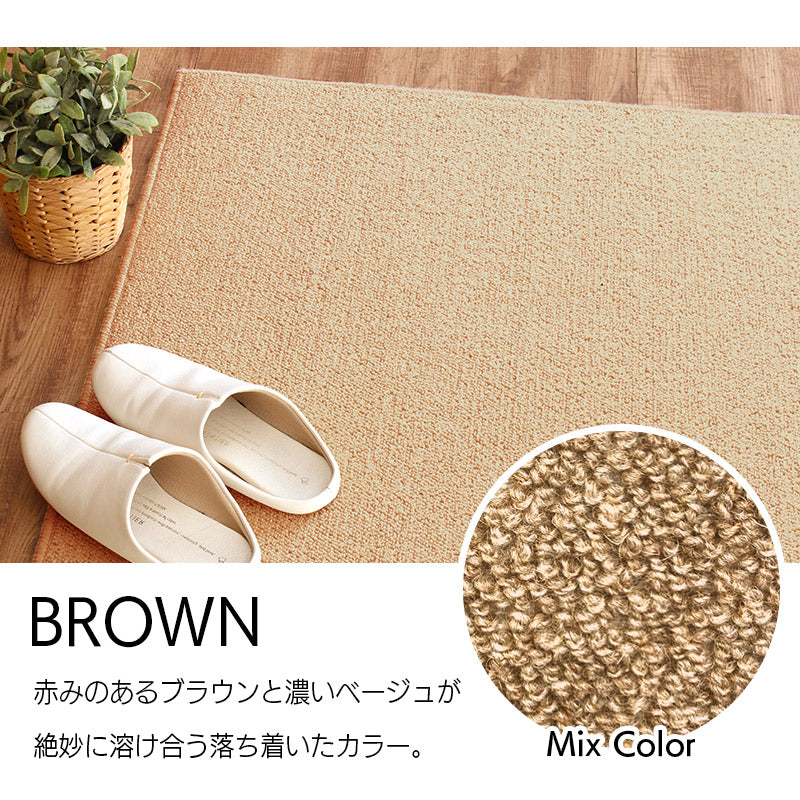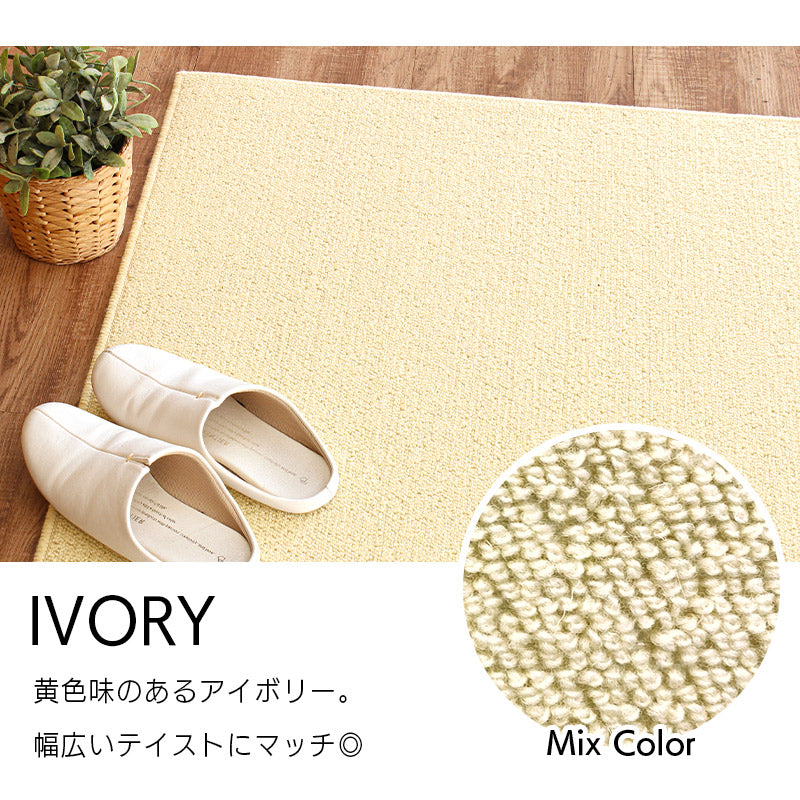 | お手入れ方法 | ●軽い汚れが付着した際は、ぬるま湯に中性洗剤を溶かし、タオルで叩くように拭き取り、風通しのよい場所で陰干しをしてください。 ●ご使用環境やご使用方法により床材の変色が起こることがあります。長期間敷いたままでのご使用はさけ、月に数回の陰干しをしてください。 ●パイルの飛び出しやほつれがあった場合は無理に引き抜こうとせず、ハサミでカットしてください。 ●洗濯 / アイロン不可 |