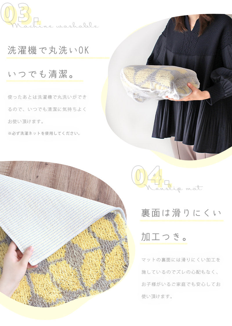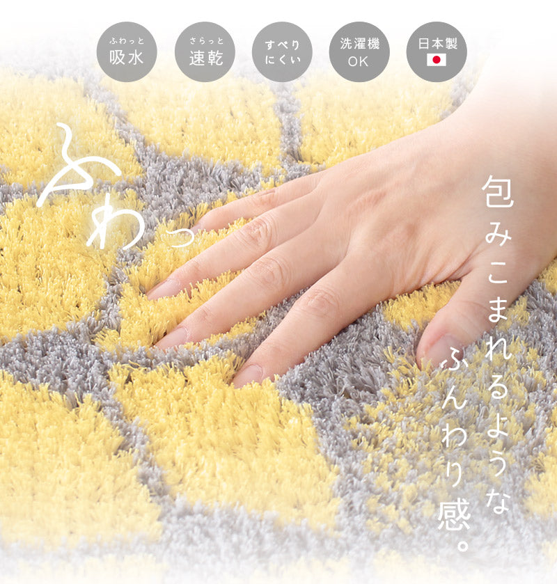 吸水アクリルの1.5倍以上の吸水力を誇る長繊維コスモトロン®を使用!ふんわりとしたやわらかい肌触りでお風呂上がりの水分も素早くたっぷりと吸い取ってくれます。さらに速乾性も高く、さらさら感が長続きするのも嬉しいポイント。汚れたら洗濯機で丸洗いができるのでいつでも清潔にお使い頂けます。デザインもオシャレな北欧風モチーフ♪お風呂から始まるリラックスタイムをさらに充実させてくれる1枚です。