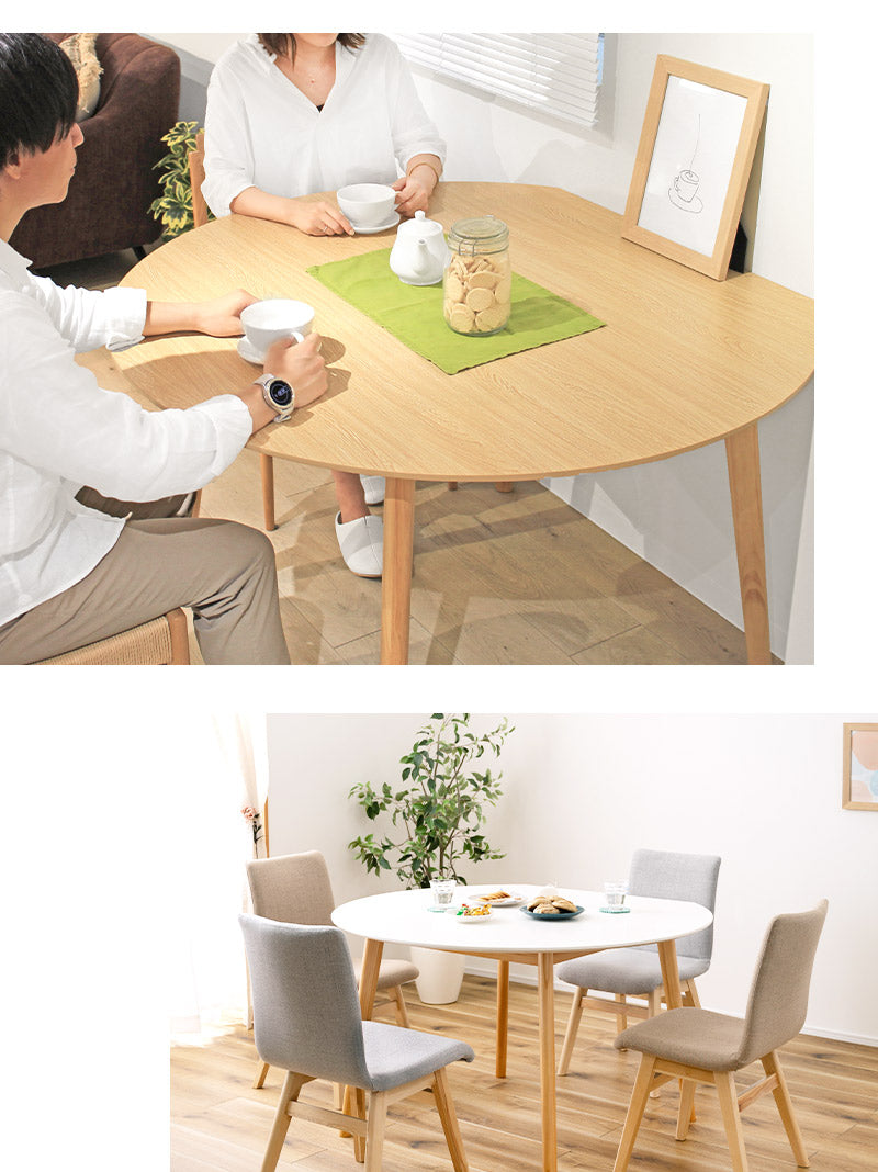 省スペースでもおしゃれ♪壁面に合わせて使える変形ラウンドテーブル