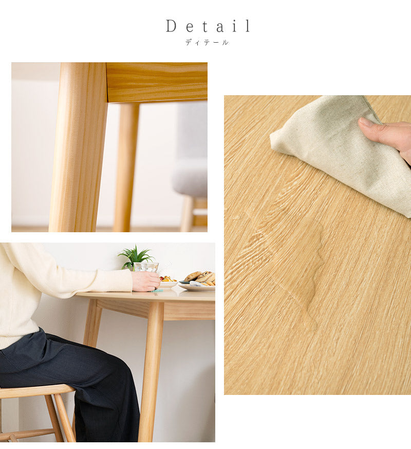 | 素材(品質) | 合成樹脂化粧繊維板、天然木(パイン)、ラッカー塗装 |
