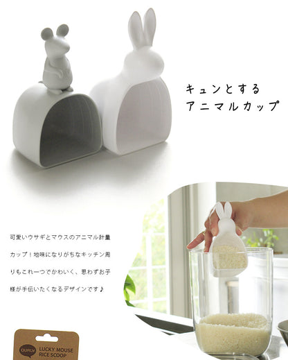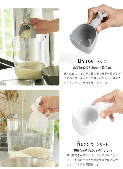 かわいいウサギとマウスのアニマル計量カップ◎地味になりがちなキッチン周りもこれ一つでかわいく、思わずお子様が手伝いたくなるデザイン♪たくさんのお米に囲まれたライスカップは、うさぎは雪に埋もれて隠れているように見えてとってもキュート。マウスも映画にでてくるキャラクターのようなユニークさでお米を炊くたびにほっこり癒されます。ちょっとしたアイテムにデザイン要素を取り入れると毎日がちょっぴりHAPPYに☆こちらの商品は100%リサイクル素材で作られたエコ商品です。