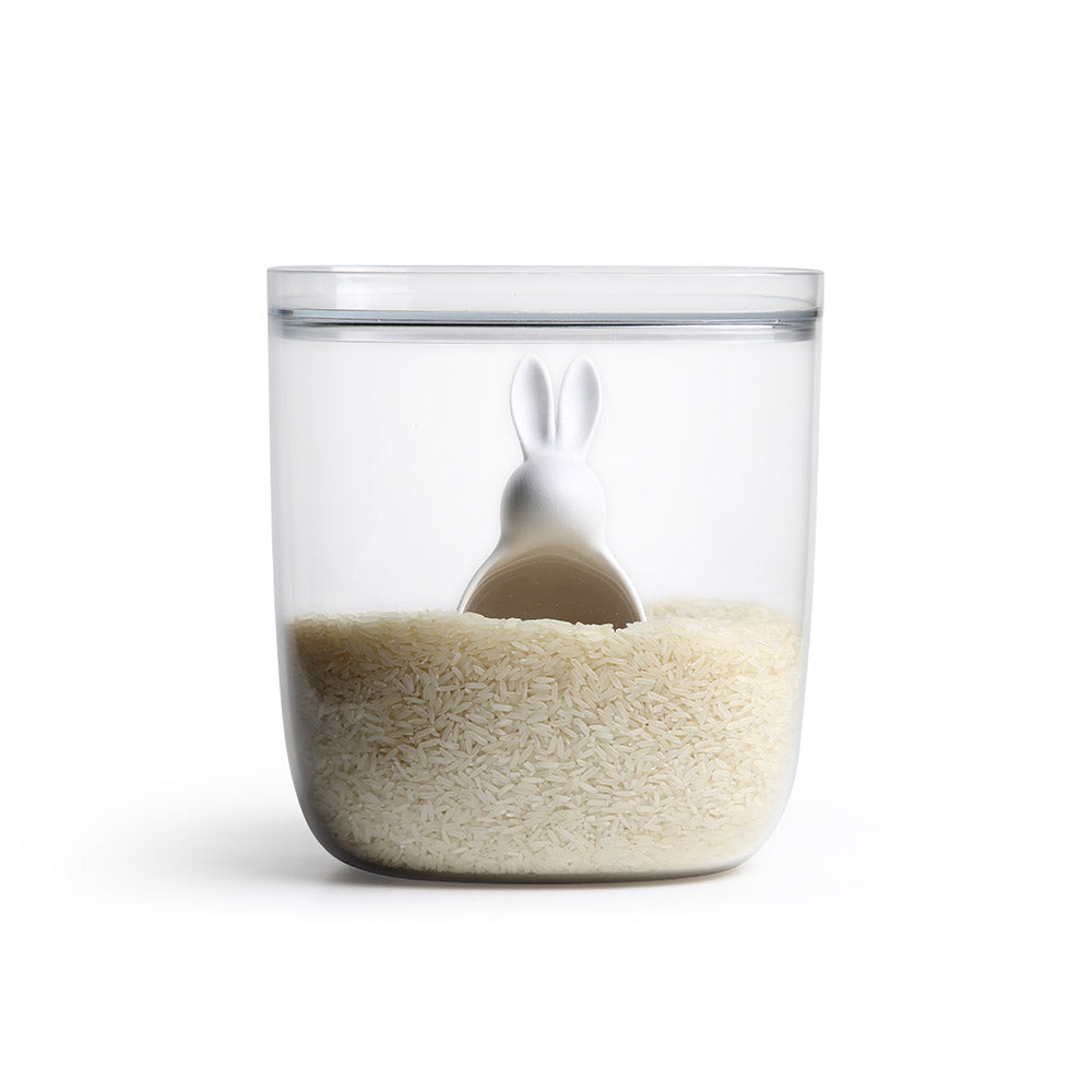 可愛いウサギとマウスの計量カップが入ったライスコンテナーの新登場!クリアカラーで中身の状態もわかりやすくお米や穀物系の食材はもちろん、お子様のおもちゃや小物収納としてもおススメです◎フタに凹みがあるので重ねて置いてもずれにくくて安心です。地味になりがちなキッチン周りもこれ一つでかわいく、思わずお子様が手伝いたくなるデザイン♪たくさんのお米に囲まれたライスカップは、うさぎは雪に埋もれて隠れているように見えてとってもキュート。マウスも映画にでてくるキャラクターのようなユニークさでお米を炊くたびにほっこり癒されます。