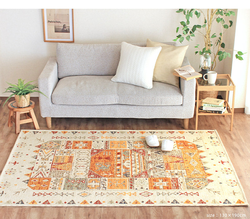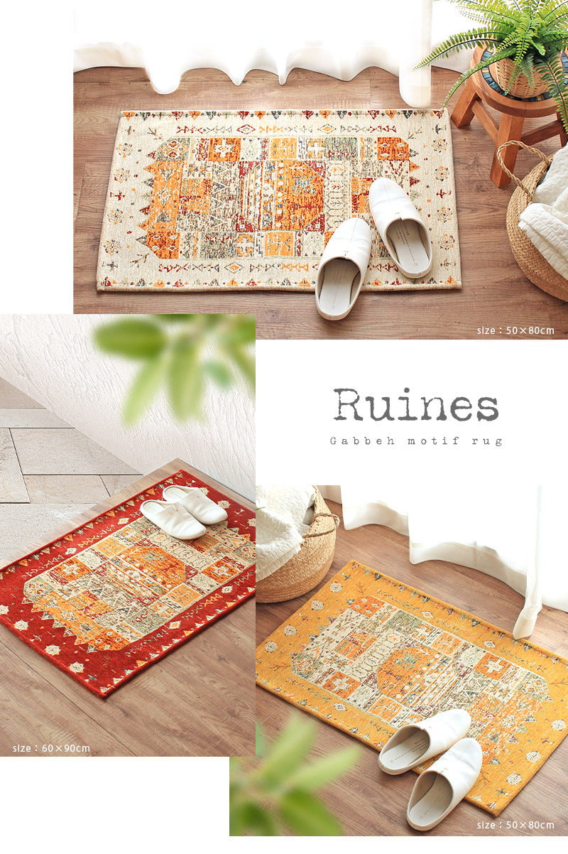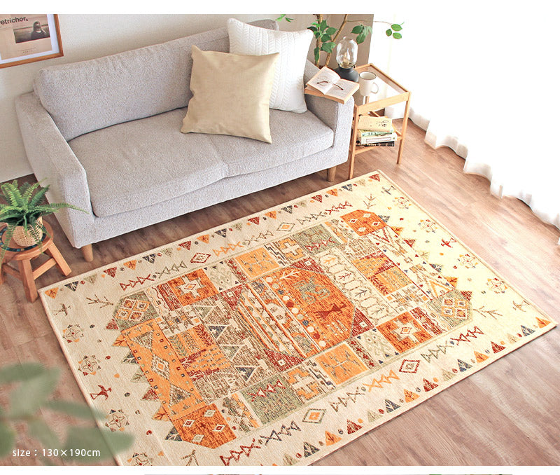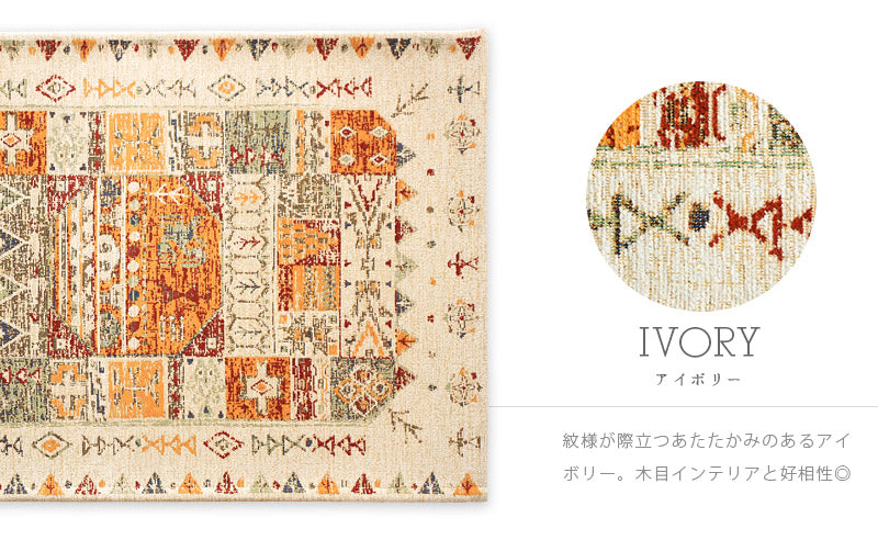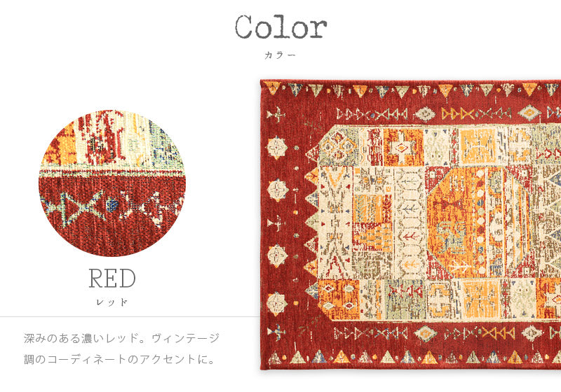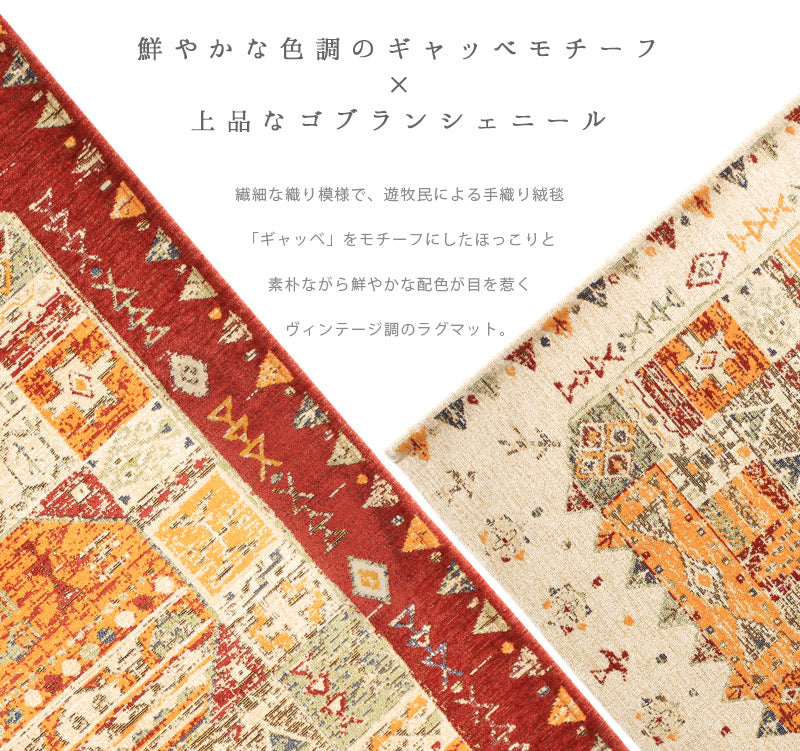 ギャッベ風モチーフの鮮やかカラーのヴィンテージ調デザイン