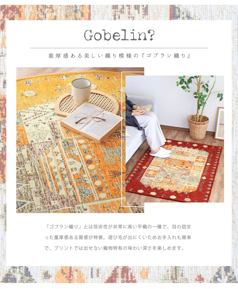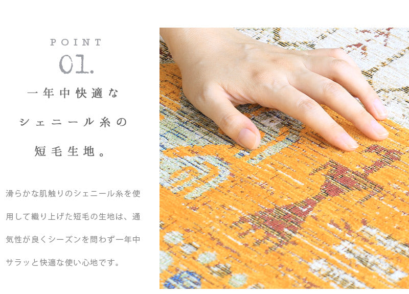 鮮やかカラーが目を惹くギャッベ風モチーフ×繊細なゴブランシェニール