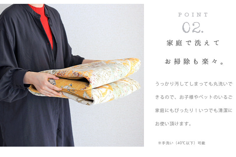 通気性も良く床暖・ホットカーペットの上にも敷けるので、オールシーズン使いやすい◎