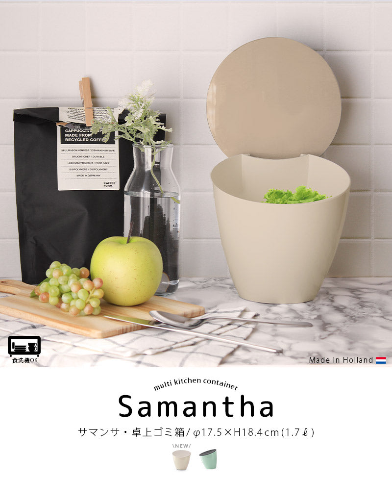 ノルディックホワイトにはグレージュの、ノルディックグリーンにはブラックのフタ付きで、シンプルながらモダンな印象に。フタの部分がやや斜めになるようデザインされているので捨てやすい!オランダらしいスタイリッシュなデザインはキッチンの雰囲気を壊さずマッチします。