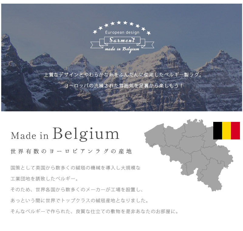 世界各国から数多くのメーカーが工場を設置し、世界でトップクラスの絨毯産地のベルギー産。