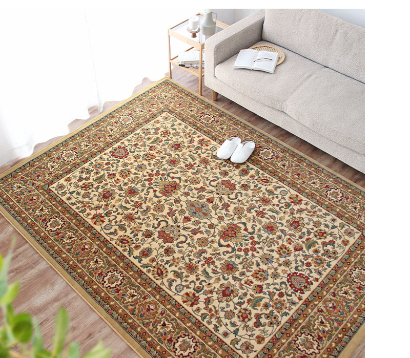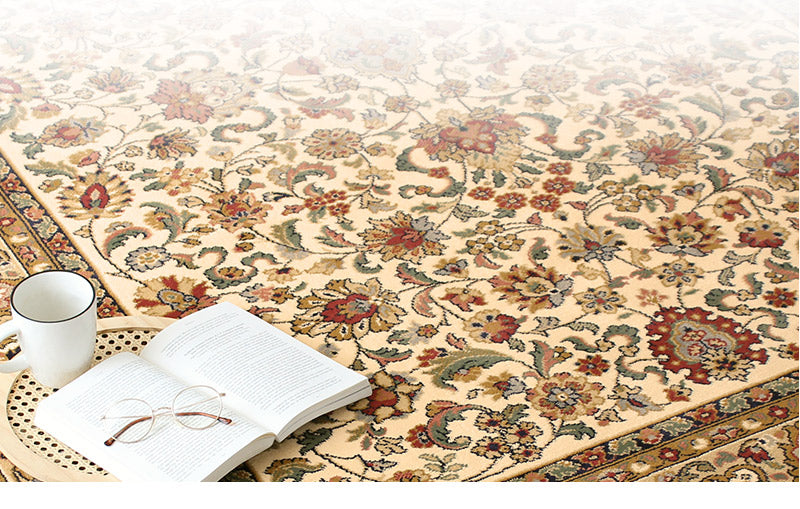 伝統的な“ウィルトン織り”の高品質ラグ。気品のあるフレームで縁取られた可憐な草花たちが彩るペルシャ風パターン