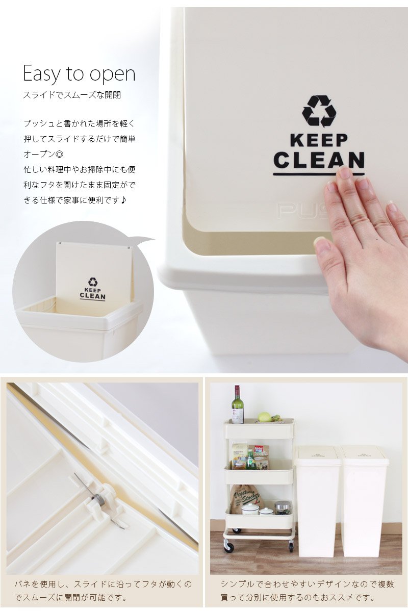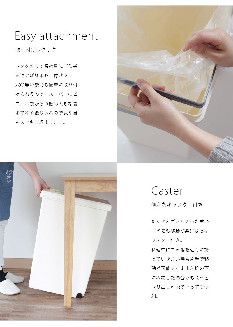 やや黄色味がかった優しいホワイトとシュッとしたスッキリデザインが魅力のゴミ箱。どんなお部屋にもなじみやすいので台所からリビング・脱衣所までスマートに使えます。