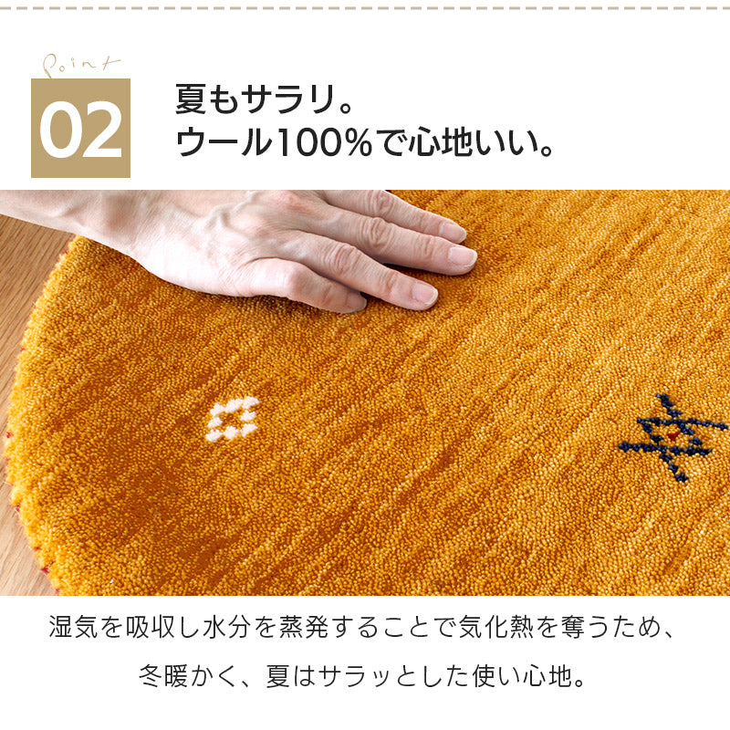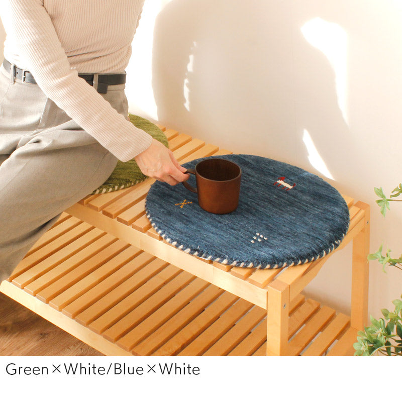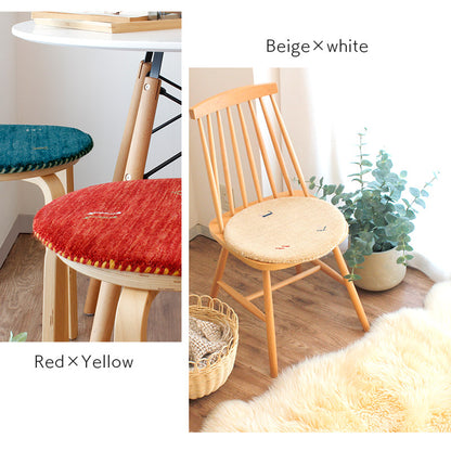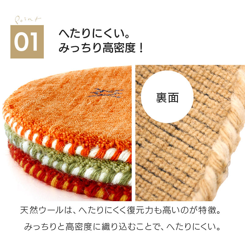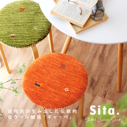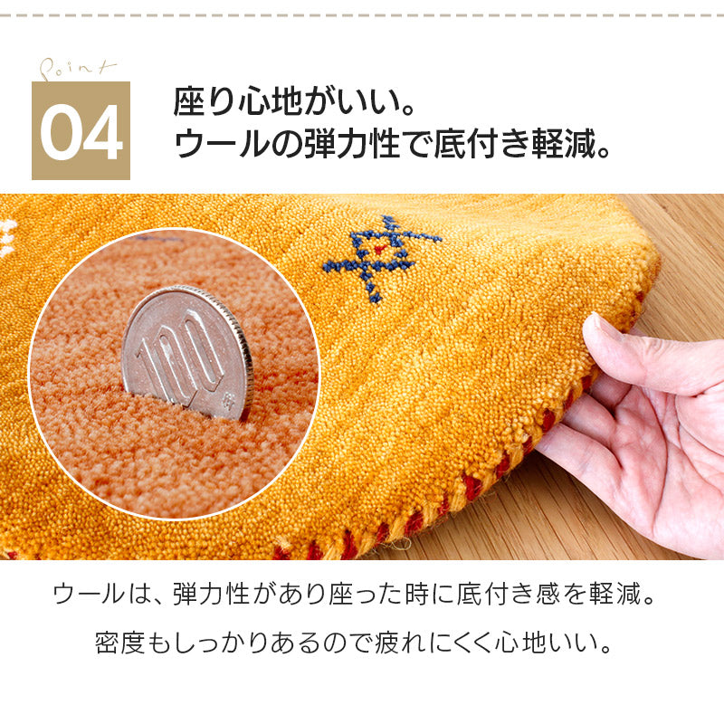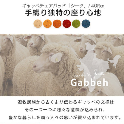 遊牧民族から古くより伝わるウールの絨毯ギャッベ。その独特な文様は一つ一つに様々な意味が込められ、豊かな暮らしを願う人々の思いが織り込まれています。ギャッベに使用される天然ウールは“呼吸する繊維”ともよばれる調湿コントロールに優れた吸湿・放湿効果のある素材で、高い保温性と断熱性で冬に暖かいのはもちろん、湿気を吸収し水分を蒸発することで気化熱が奪われ夏でもサラッとした使い心地。素材そのものの弾力性も強いためへたりにくく、みっちりとした目付けで高密度に織り込むことでより耐久性が高いものに仕上がります。チェアパッドも同様、密度が高いため底付きを感じにくく、長時間座っていてもお尻が痛くなりにくい。伝統が生んだ天然ウールのチェアパッドを是非ご家庭でお楽しみください。