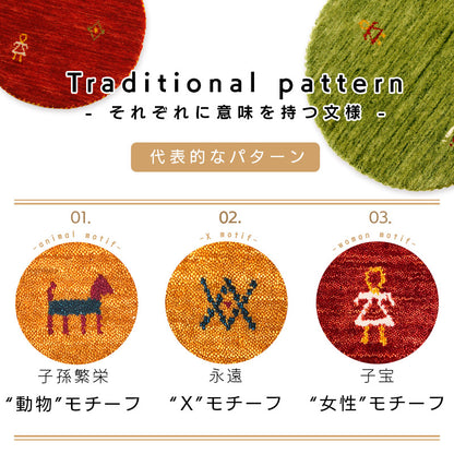 遊牧民族から古くより伝わるギャッベの文様はその一つ一つに様々な意味が込められ、 豊かな暮らしを願う人々の思いが織り込まれています。