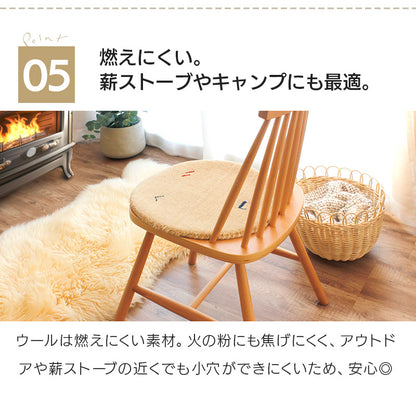 ウールは燃えにくい素材。火の粉にも焦げにくく、アウトドアや薪ストーブの近くでも小穴ができにくいため、安心◎