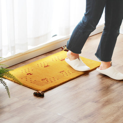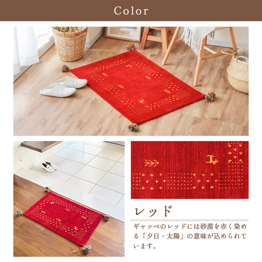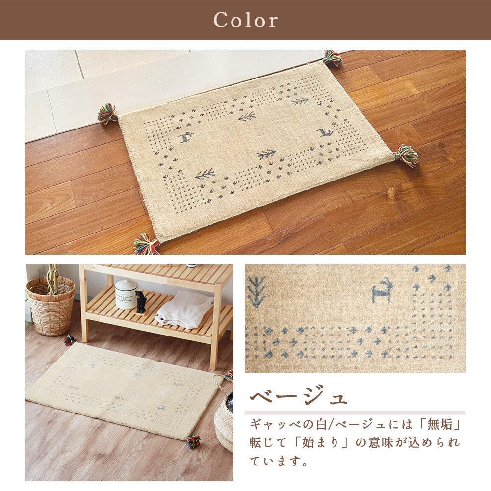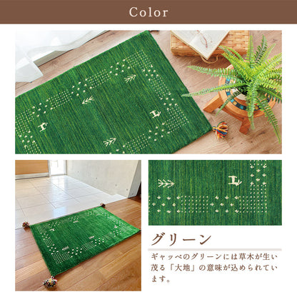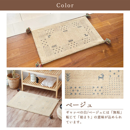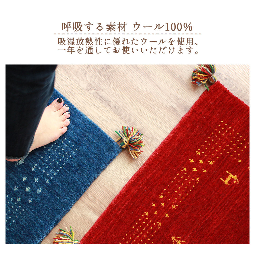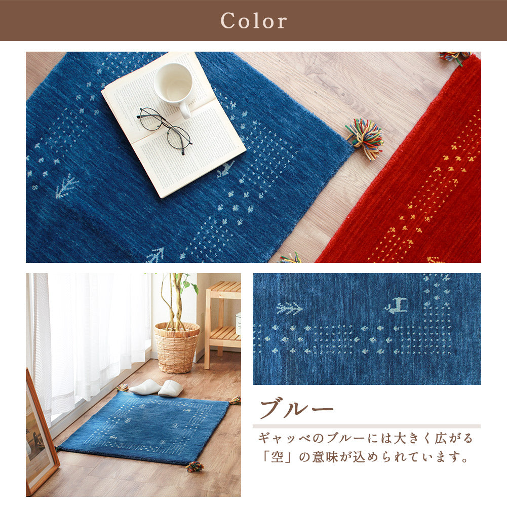 遊牧民族から古くより伝わるウールの絨毯ギャッベ。その独特な文様は一つ一つに様々な意味が込められ、豊かな暮らしを願う人々の思いが織り込まれています。ギャッベに使用される天然ウールは“呼吸する繊維”ともよばれる調湿コントロールに優れた吸湿・放湿効果のある素材で、高い保温性と断熱性で冬に暖かいのはもちろん、湿気を吸収し水分を蒸発することで気化熱が奪われ夏でもサラッとした使い心地。素材そのものの弾力性も強いためへたりにくく、みっちりとした目付けで高密度に織り込むことでより耐久性が高いものに仕上がります。伝統が生んだ天然ウールの絨毯を是非ご家庭でお楽しみください。