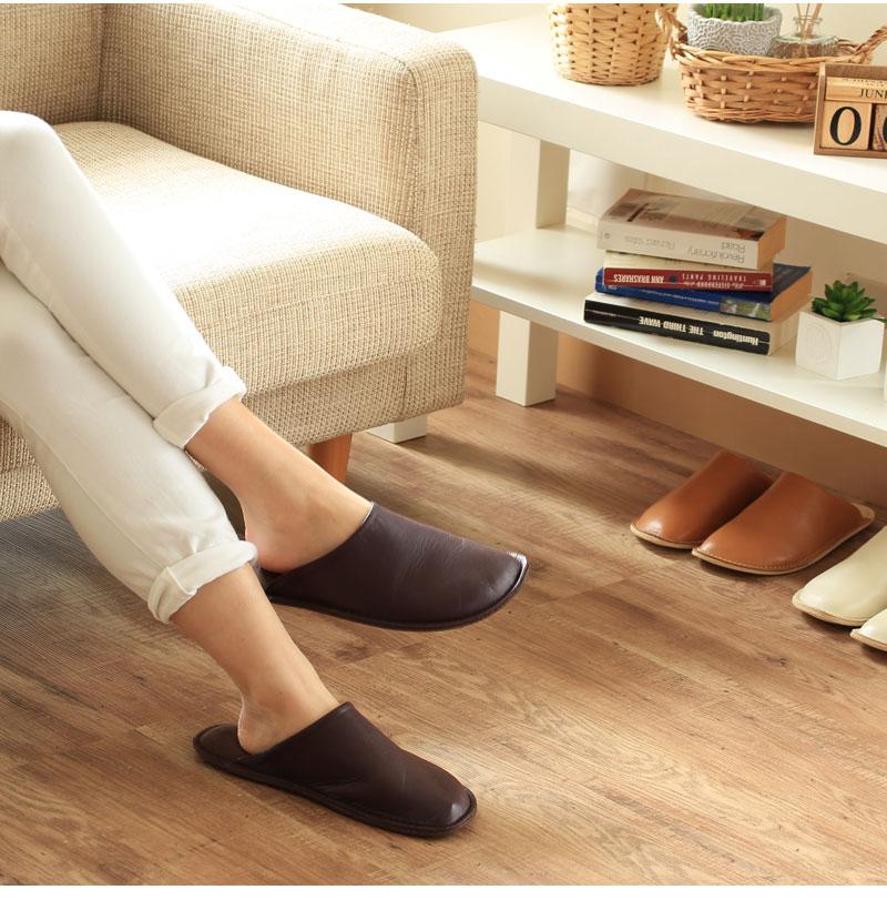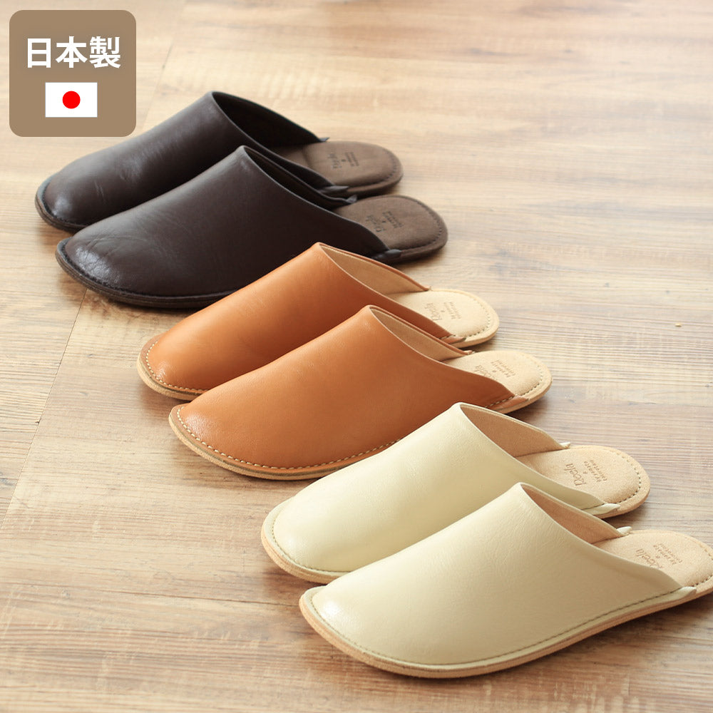 日本の職人によって一点一点丁寧に製作されたレザースリッパ。アッパーはスムースレザーならではの光沢感と高級感を醸し出し、その柔らかな生地とインソールの人工皮革はまるで手がやさしく包み込んでいるようなフィット感を生み出します。履いた瞬間から足によく馴染み、素足で歩いているような自然な履き心地。洗練されたレザーの雰囲気と極上の履き心地をお楽しみください。