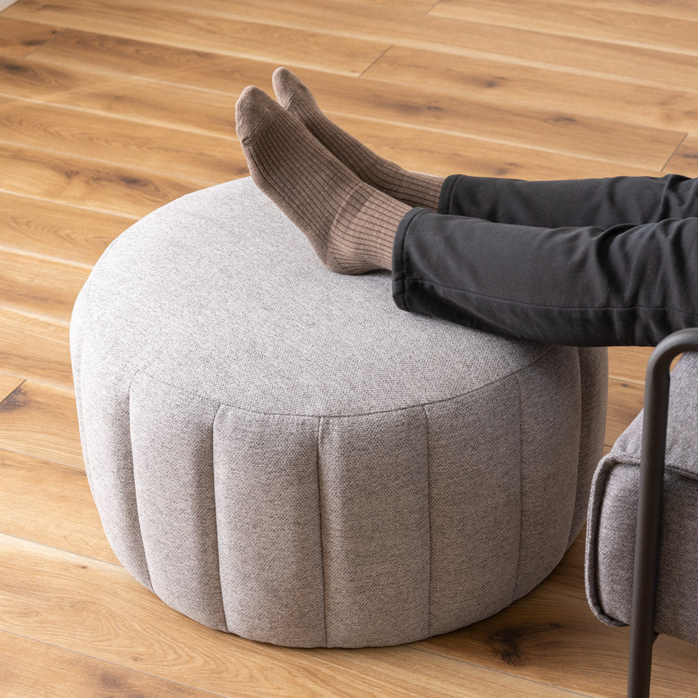 目を惹かれるかわいいフォルムが特徴的なラウンドスツール。直径60cmの大きめの座面は沈みを抑えた設計ながら、しっくりと馴染む絶妙な座り心地で安定感があるので、スツールはもちろん、ちょっとしたテーブルやオットマンなどマルチに活躍してくれます◎様々なテイストにマッチする色合いで、淡く優しいくすみカラーは韓国インテリアや北欧テイストと相性バツグン。お部屋のアクセントになること間違いナシです♪
