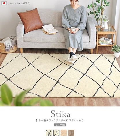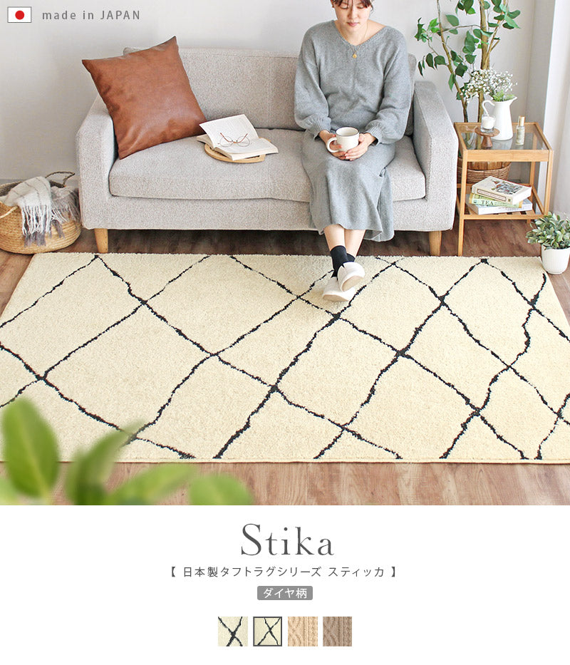 日本製 タフトラグ スティッカ ダイヤ柄 0.7畳~3畳