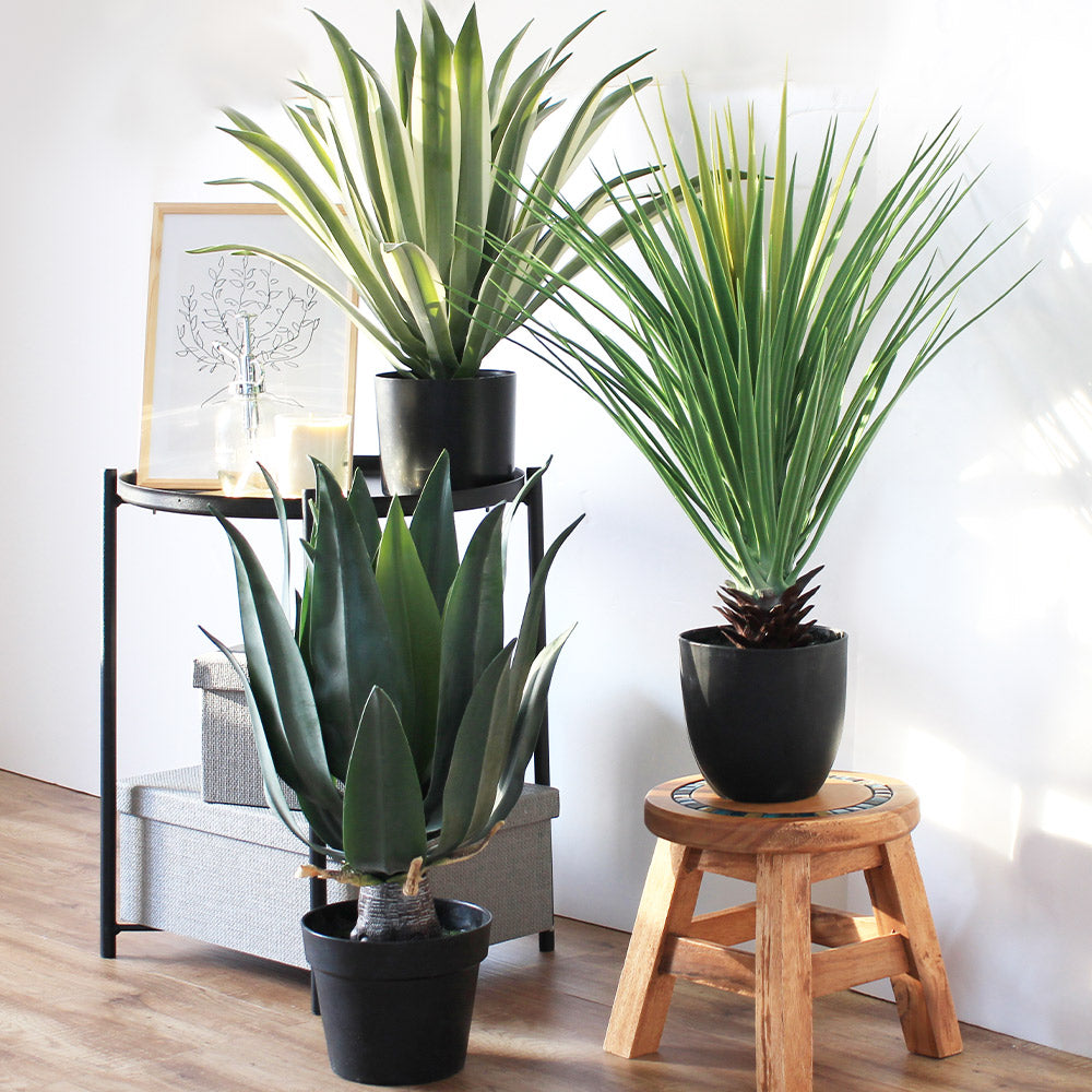 【アガベ(a)】 全体:約W63×D63×H50cm ベース:約φ15.5×H13cm(5号) 【アガベ(b)】 全体:約W53×D53×H53cm ベース:約φ18×H14cm(6号) 【ミニパイナップル】 全体:約W61×D61×H67cm ベース:約φ17×H15cm(5.5号) |