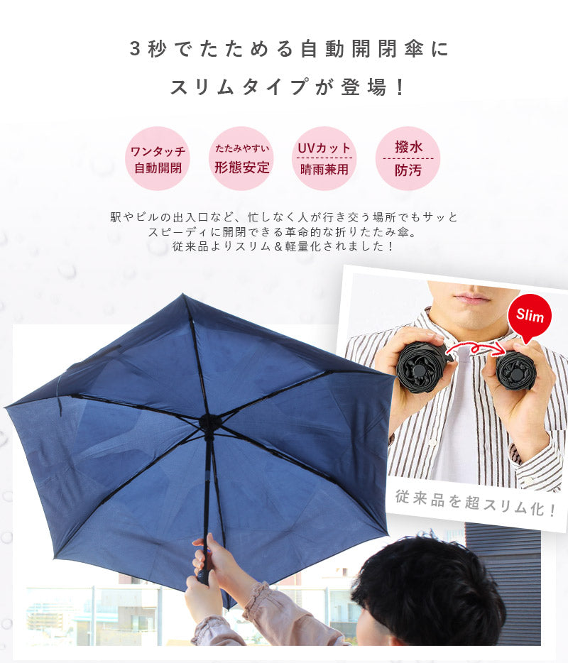 3秒でたためる、自動開閉折りたたみ傘にスリムタイプが登場!